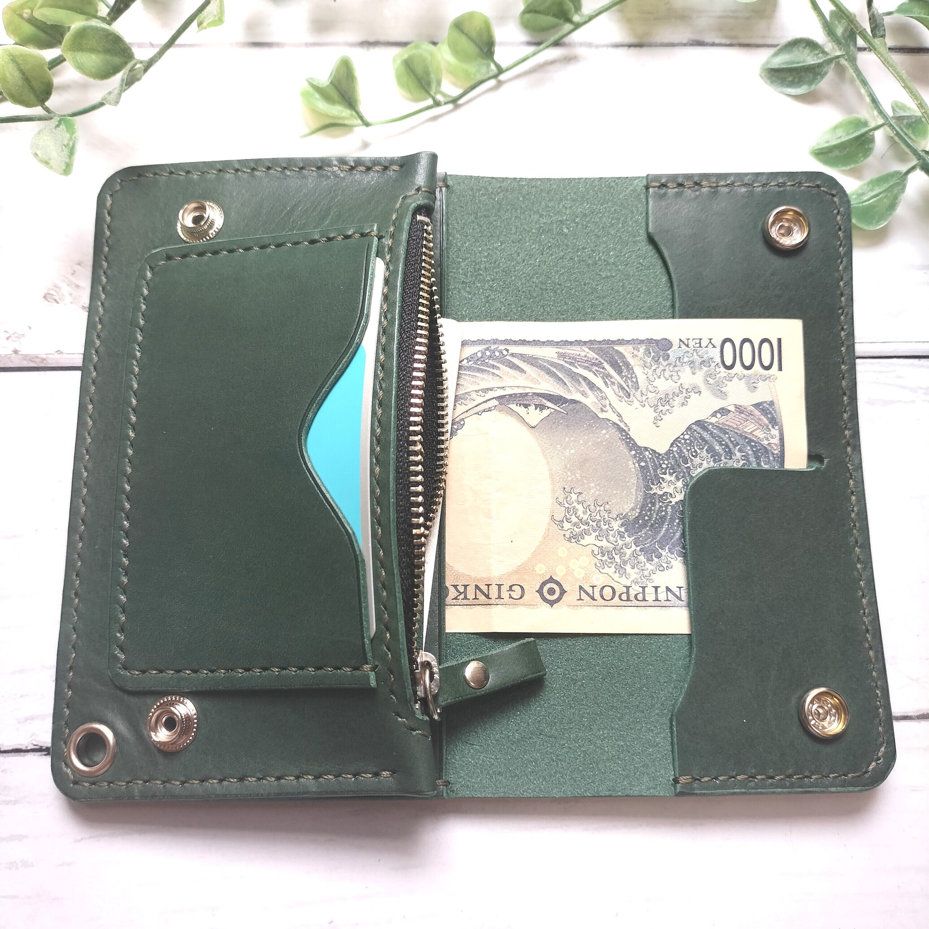 タンニン鞣し革を使用したトラッカーウォレット(長財布)です。