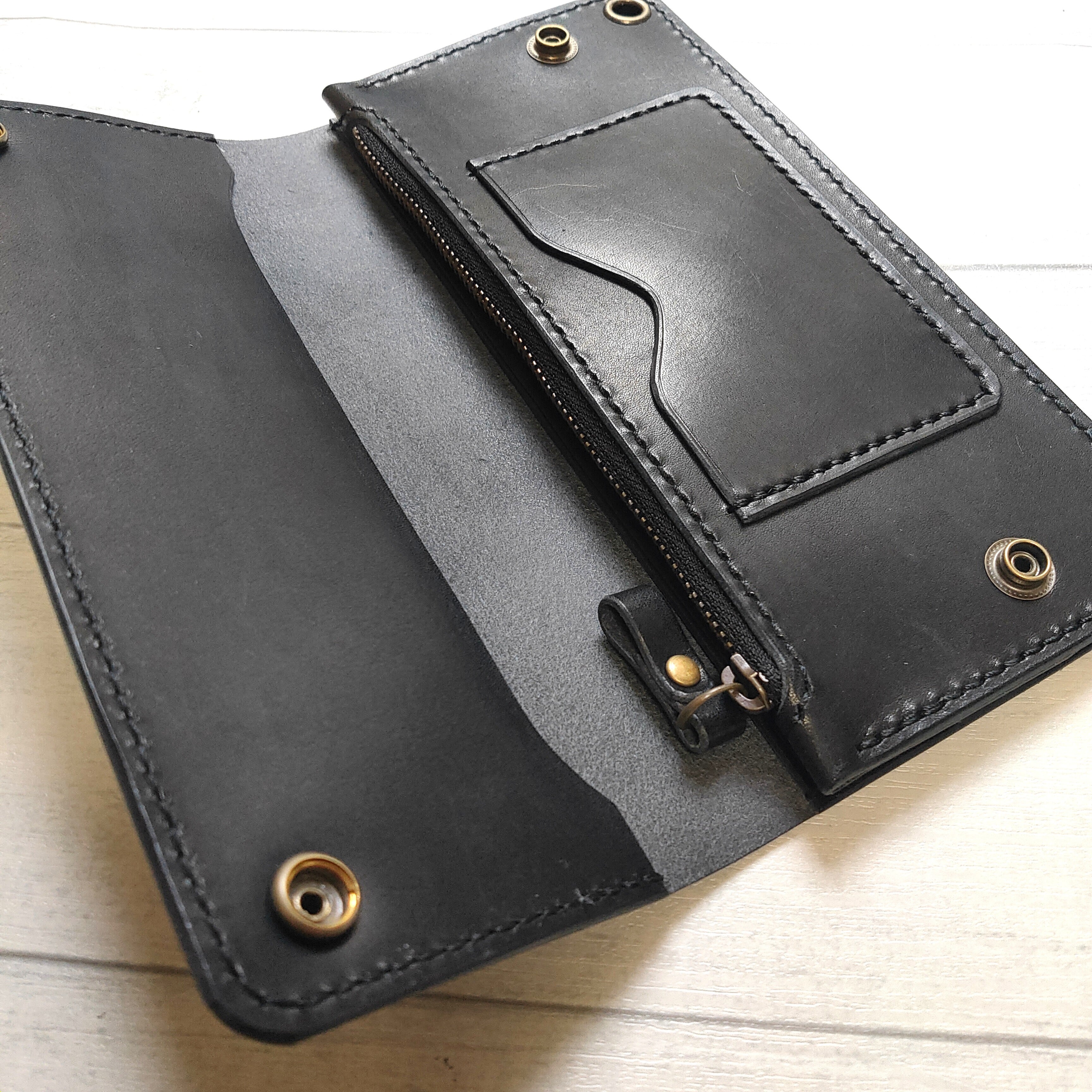 タンニン鞣し革を使用したロングサイズのトラッカーウォレット(長財布)です。