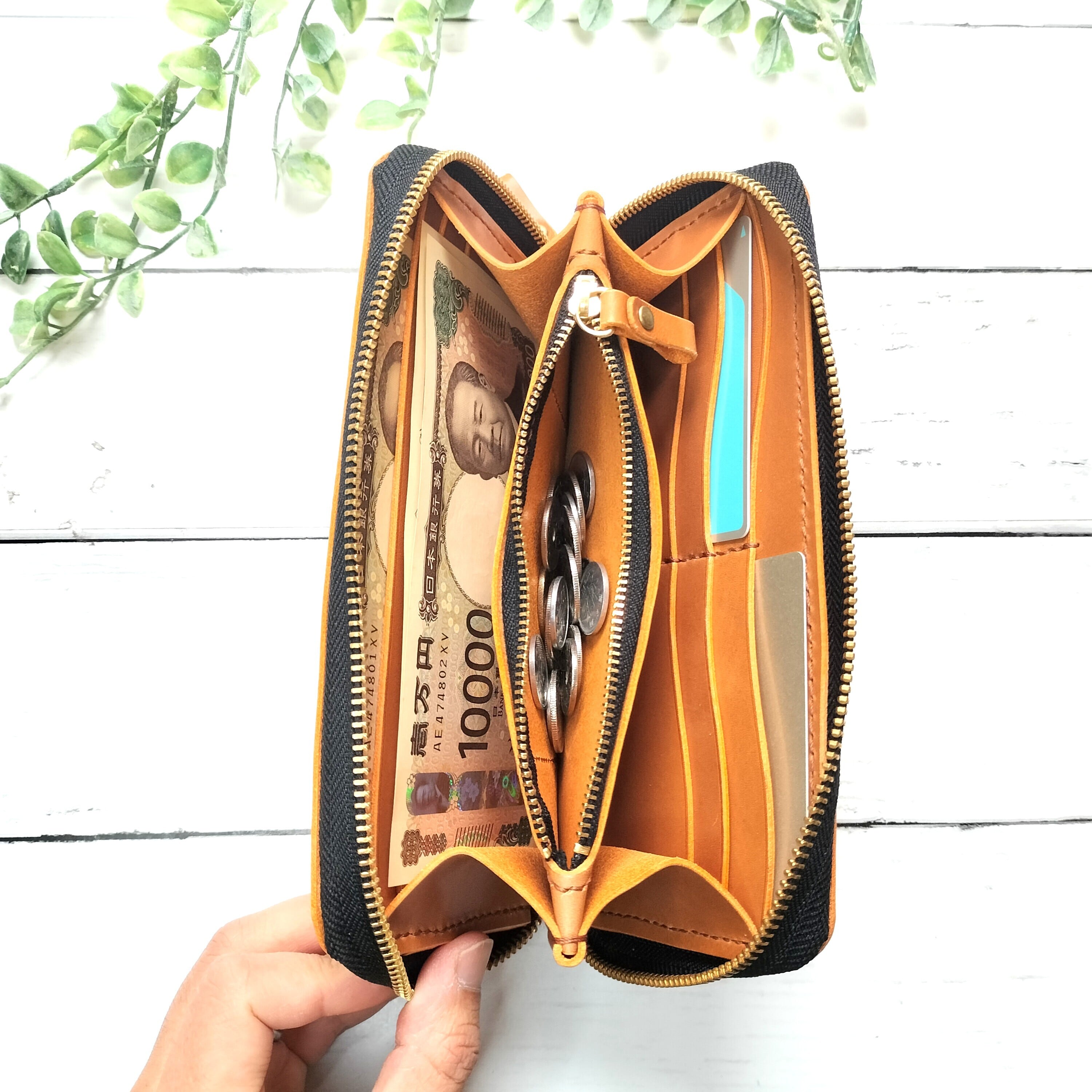 使うほどに手に馴染み、革の風合いが深まる、タンニンなめし革を使用したラウンドファスナーウォレット(長財布)です。